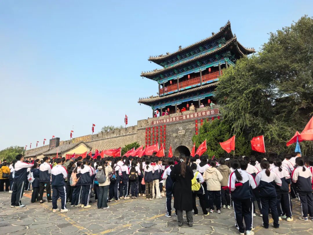 来自山东商贸高级技工学校的600余名师生齐聚于此,开展以“寻八仙足迹,铸商贸匠心”为主题的登高活动。师生们依次参观了戚继光纪念馆、古船博物馆、蓬莱阁古建筑群及老北山等核心景点,在山海相依的壮阔景致中,沉浸式体验了蓬莱阁深厚的历史积淀与人文底蕴。