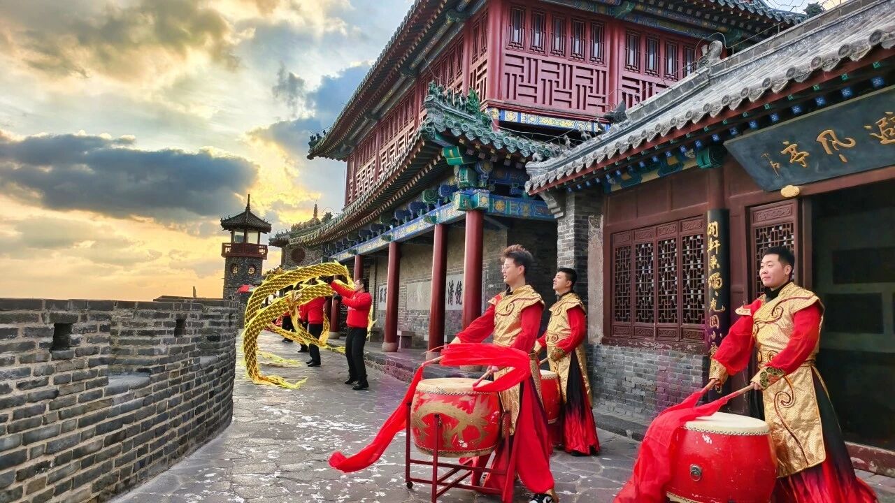 老北山索道西站观景平台上,威风锣鼓敲响了新年的序曲。鼓点铿锵有力,声震云霄,节奏明快的旋律驱散了清晨的寒意,传递出满满的活力与喜庆。