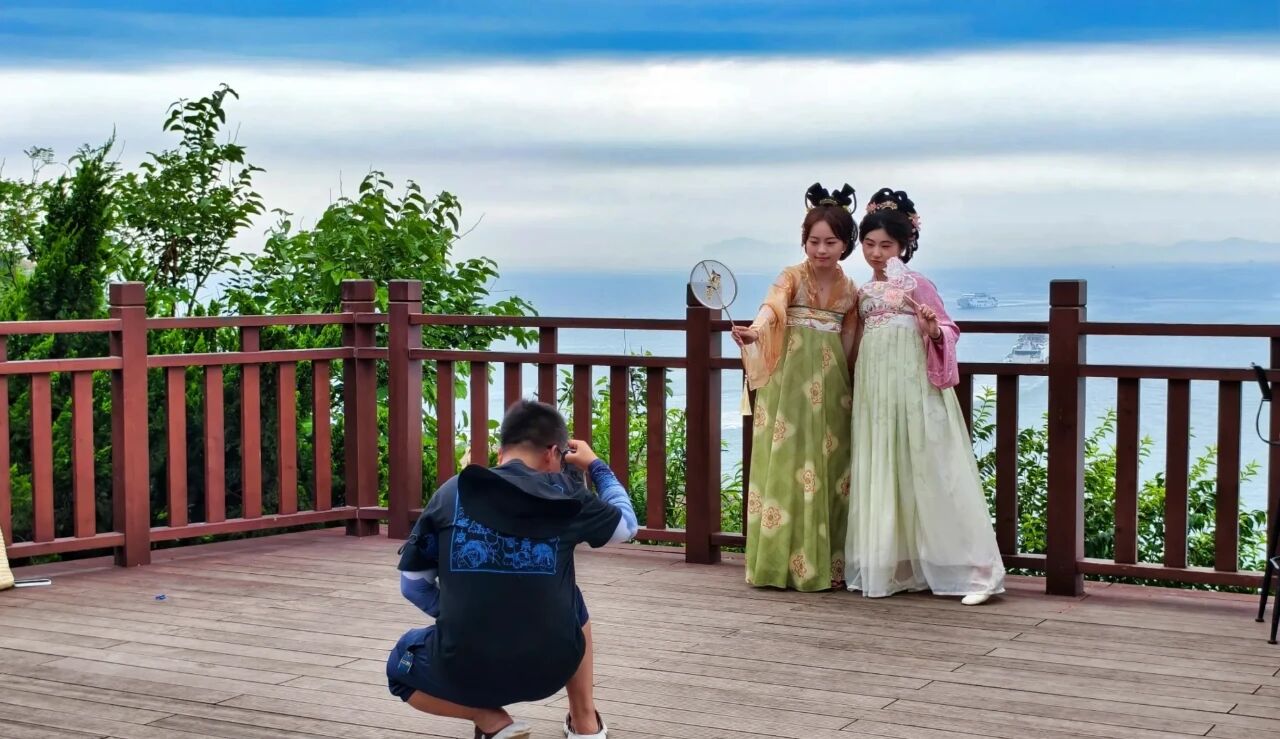 景区在全景广场、东炮台、丹崖仙境坊、龙王宫、吕祖殿设置专属打卡点位,为汉服同袍提供免费拍照服务,留住仙阁国风瞬间。