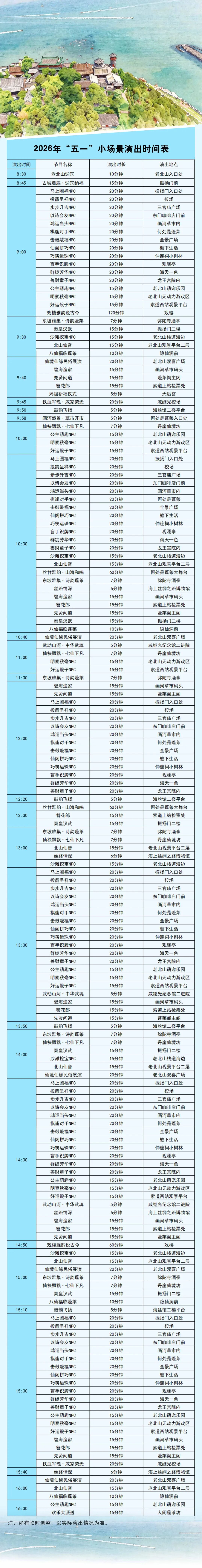 “五一”假期,景区各处的小场景演出轮番上演、亮点十足。迎宾纳福、戚家荣光、八仙福临、东坡雅集、丝路情深……每一场演出都能让你沉浸式感受仙境山海古韵的独特魅力。